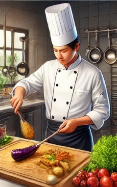 "완벽한 가지튀김은 기초부터 다릅니다. 신선한 재료와 적절한 온도가 성공의 열쇠입니다."