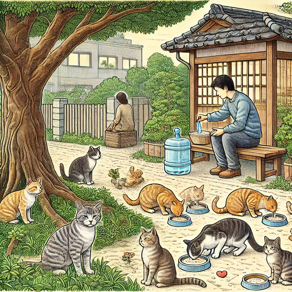 “길고양이들에게 먹이를 주더라도 주변 환경을 고려하는 것이 중요합니다.”
