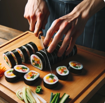 - 김밥 말기: 김 끝부분에 물을 살짝 발라 김밥이 풀리지 않게 고정합니다.