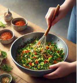 - 으깬 두부와 다진 채소를 섞는다.