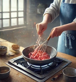 - 다진 돼지고기와 소고기를 큰 그릇에 담는다.