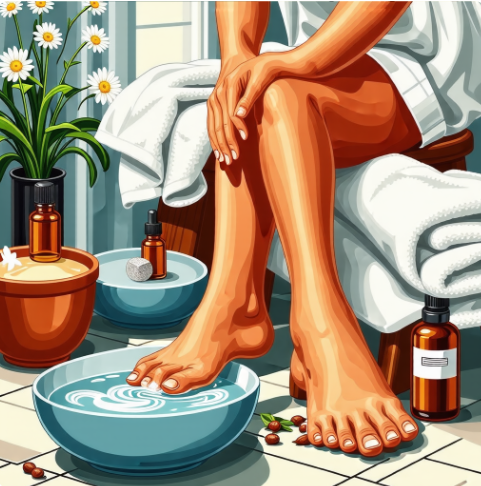 발을 따뜻한 물에 10~15분 정도 담가 두면 각질이 부드러워져 제거하기 쉬워집니다. 여기에 천연 재료를 활용하면 각질 제거 효과가 더욱 높아집니다.