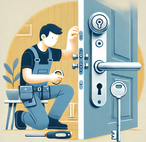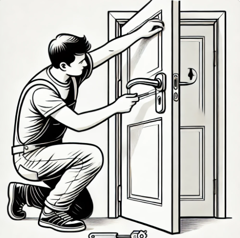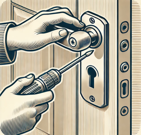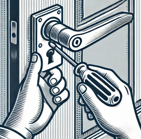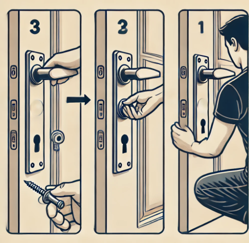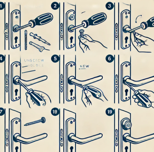 | 3. 새로운 손잡이 부착 | 새 손잡이를 문에 맞추고, 나사를 사용해 고정합니다. |