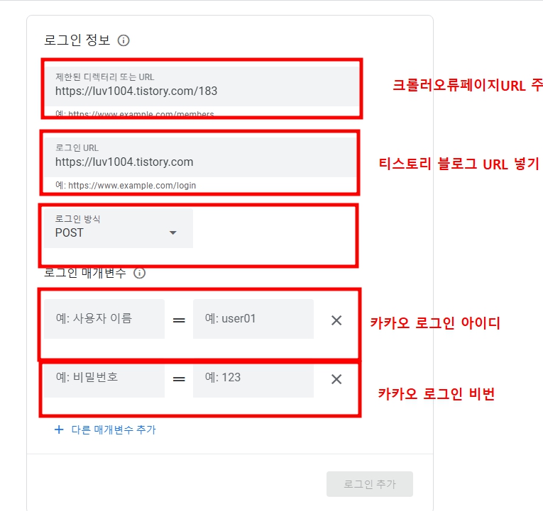 빨간박스에 로그인 추가가 있지요? 클릭하셔서 들어가시면 아래와 같은 화면이 나올거에요.