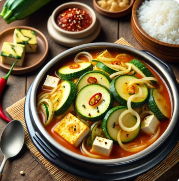 애호박찌개는 얇게 썬 애호박과 두부, 양파, 고추 등을 함께 넣고 끓인 한국 전통 찌개 요리입니다. 감칠맛을 더하기 위해 멸치육수나 된장을 기본으로 사용하며, 각종 야채들이 어우러져 구수하면서도 시원한 맛을 냅니다. 특히, 애호박은 식감이 부드럽고 다른 재료들과 자연스럽게 조화를 이루기 때문에 다양한 한국 요리에 자주 사용됩니다.